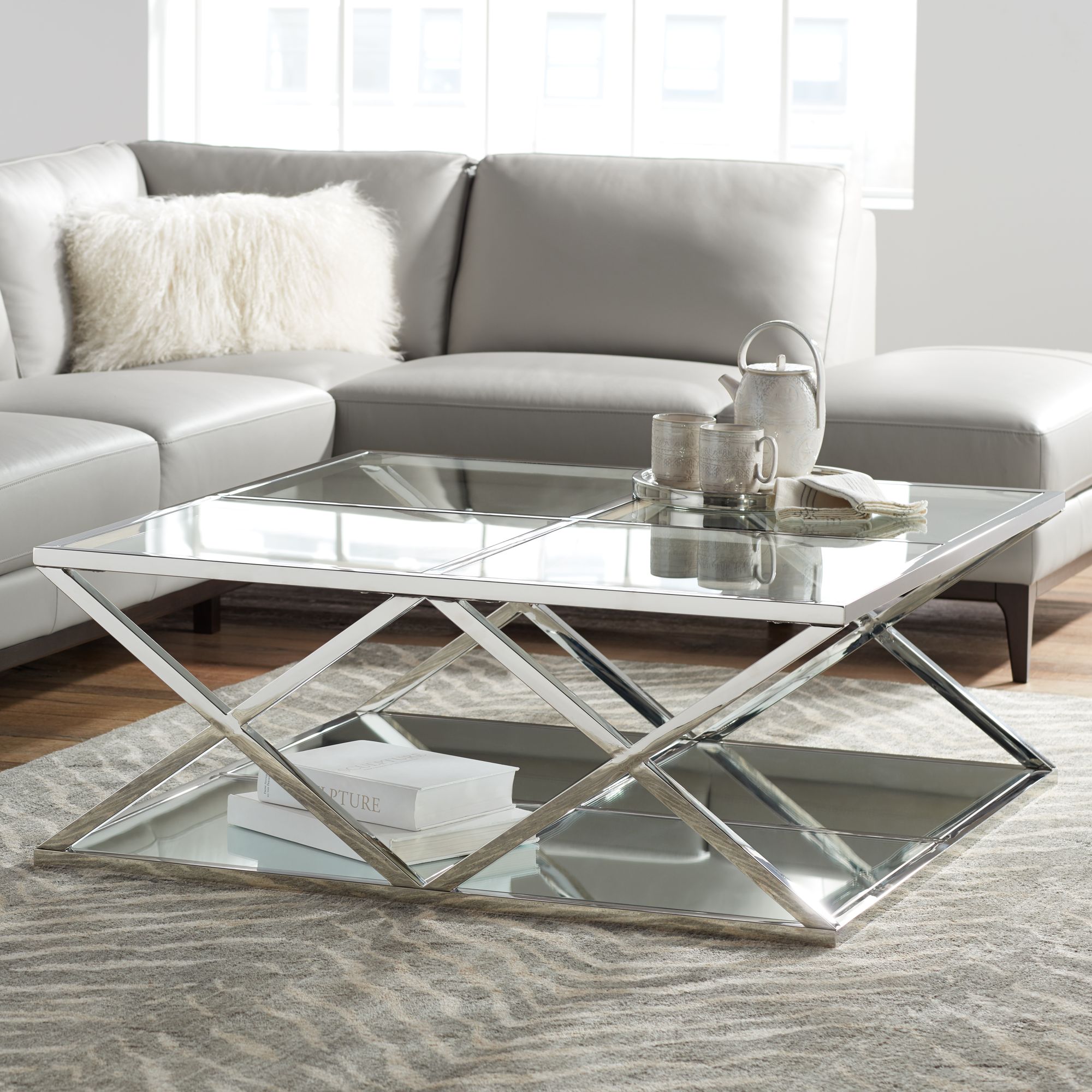 Skylar 40" Wide Mirrored and Chrome Modern Coffee Table