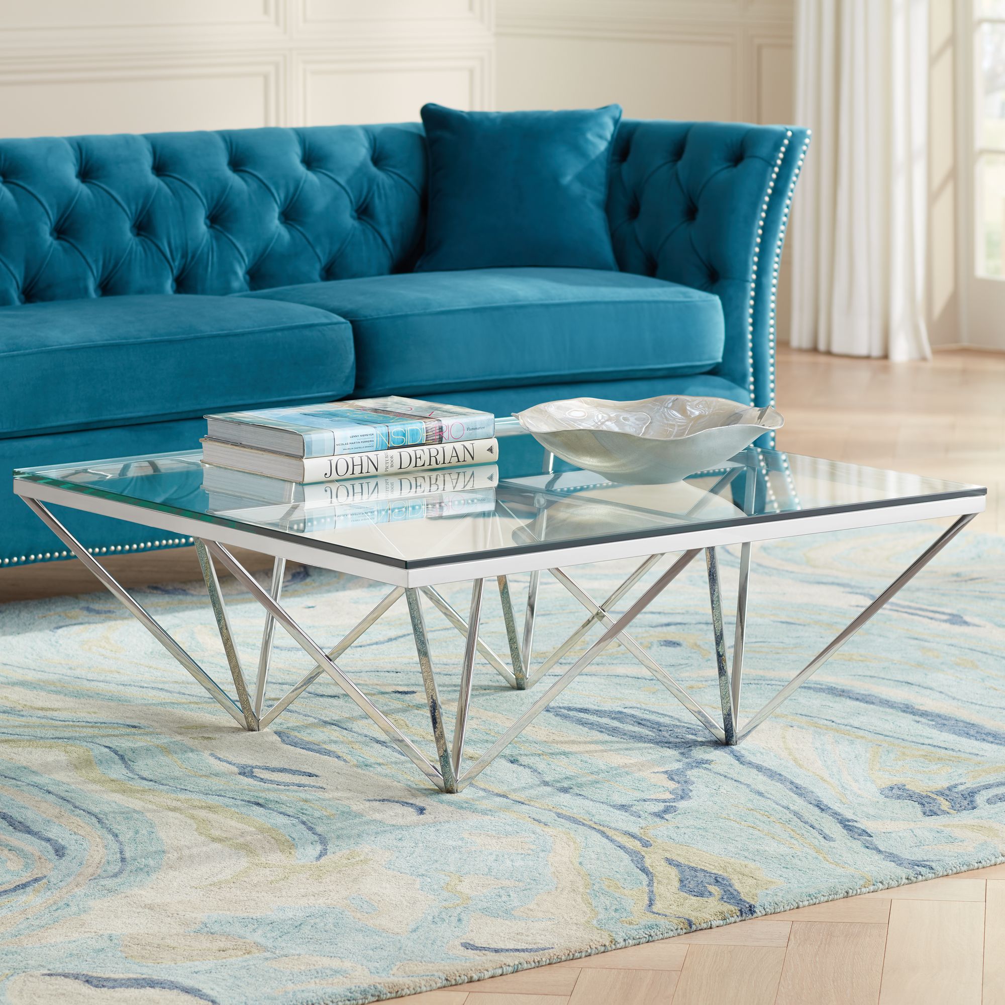 Luxor 41 1/2" Square Chrome and Glass Modern Coffee Table