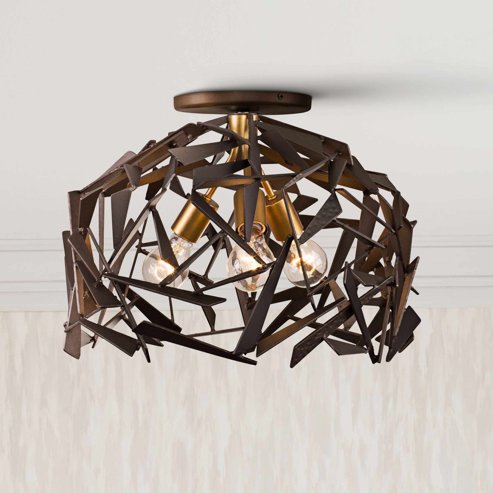 Bermuda 18"W Antique Gold and Bronze 3-Light Ceiling Light