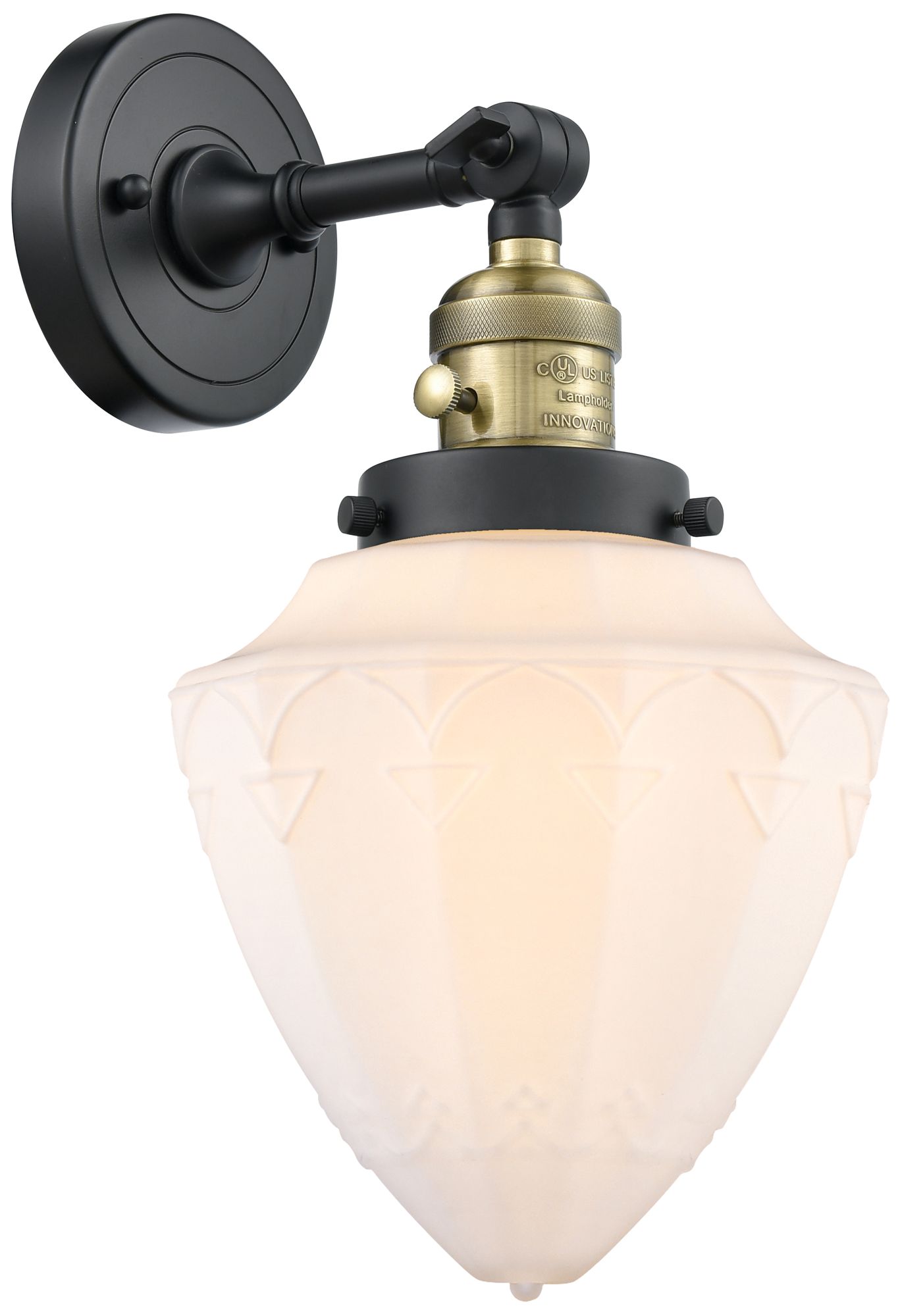 Bullet 7" Black Antique Brass Sconce w/ Matte White Shade