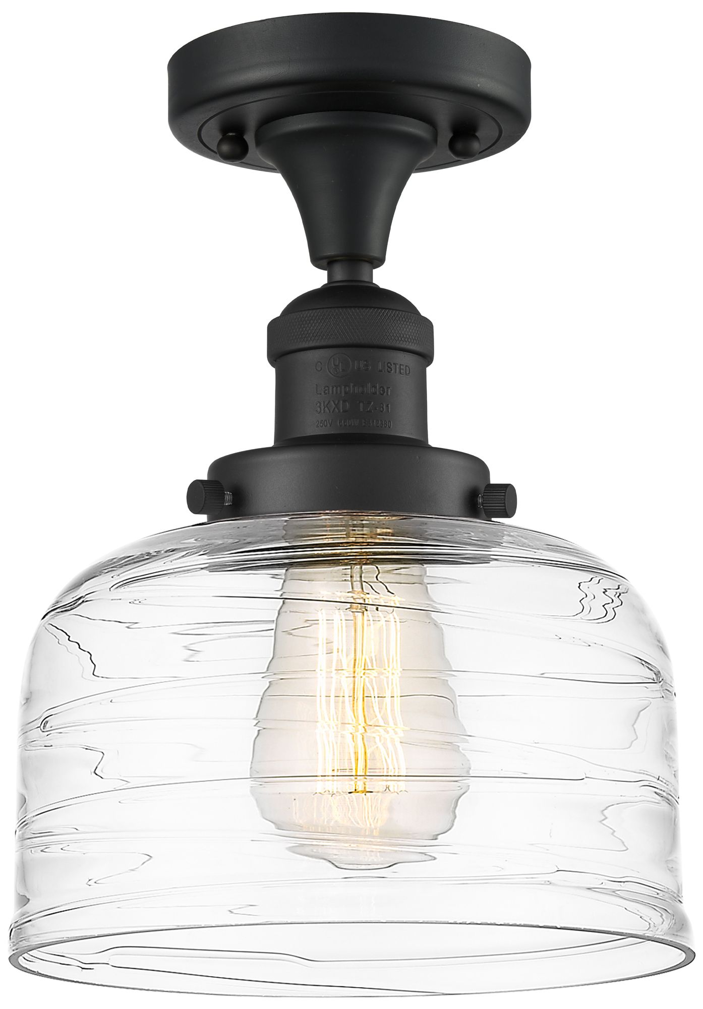 Bell 8" LED Semi-Flush Mount - Matte Black - Clear Deco Swirl Shade