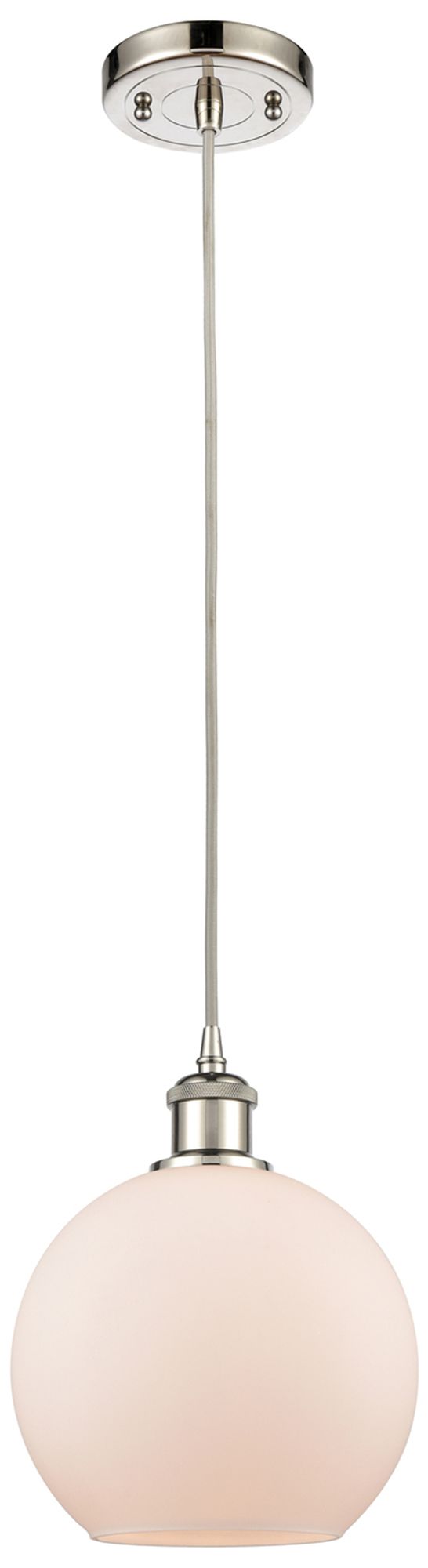 Ballston Athens 8"W Cord Hung Polished Nickel Mini Pendant w/ White Sh