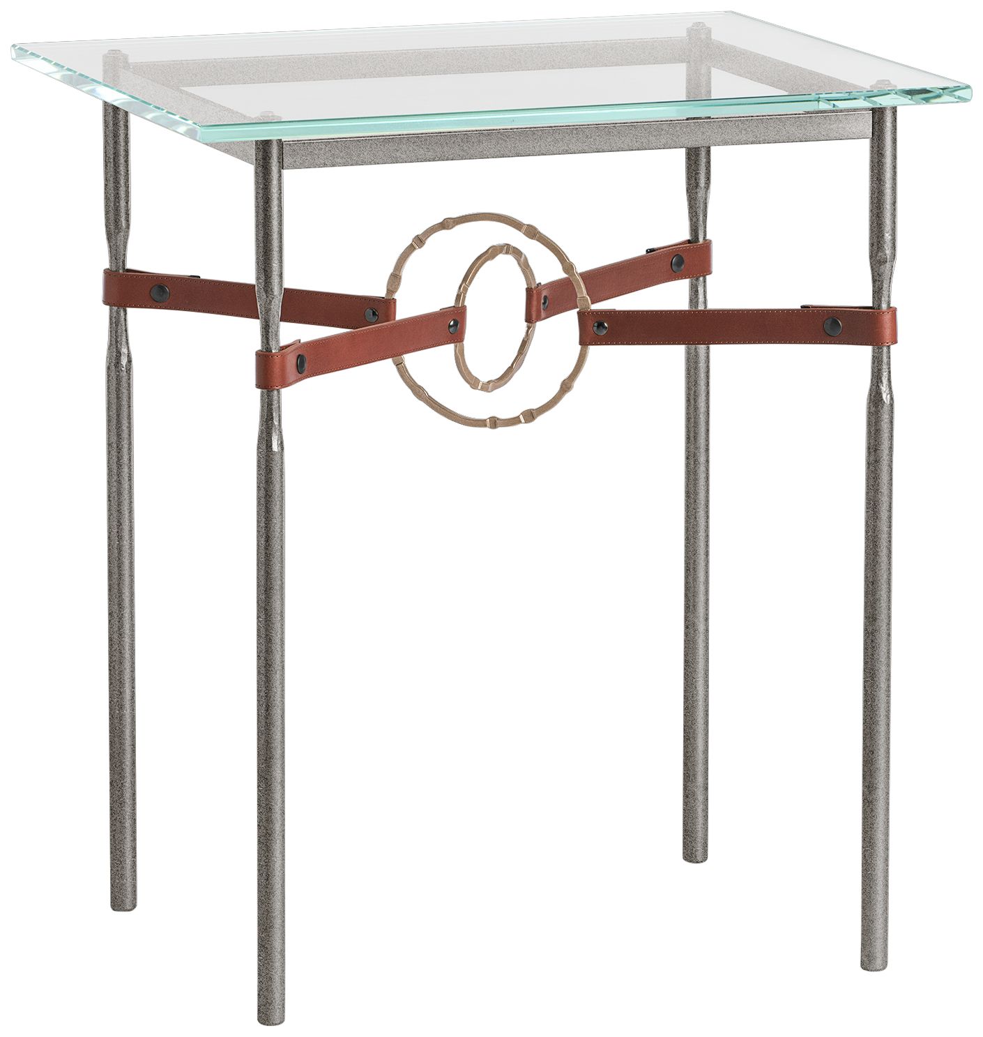 Equus 22"W Natural Iron Side Table w/ Gold Ring Brown Strap