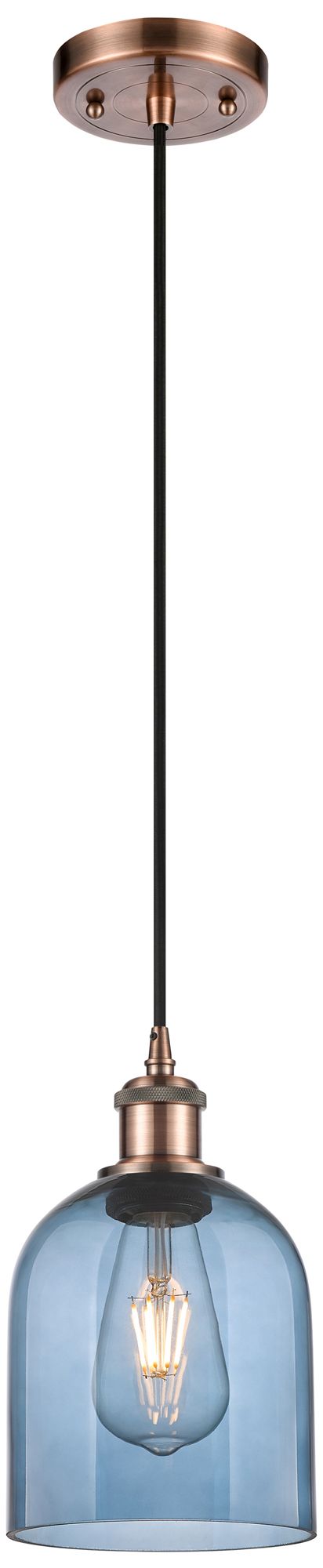 Ballston Bella 5.5"W Copper Corded Mini Pendant w/ Princess Blue Shade