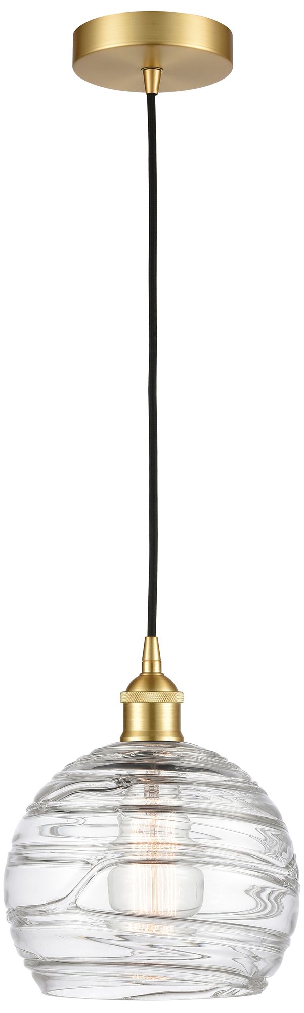 Athens 8" Satin Gold Mini Pendant w/ Clear Deco Swirl Shade
