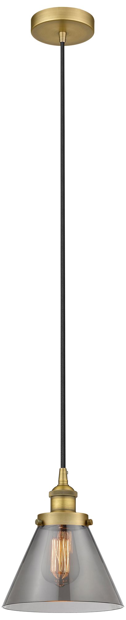 Cone 8" Brushed Brass Mini Pendant w/ Plated Smoke Shade