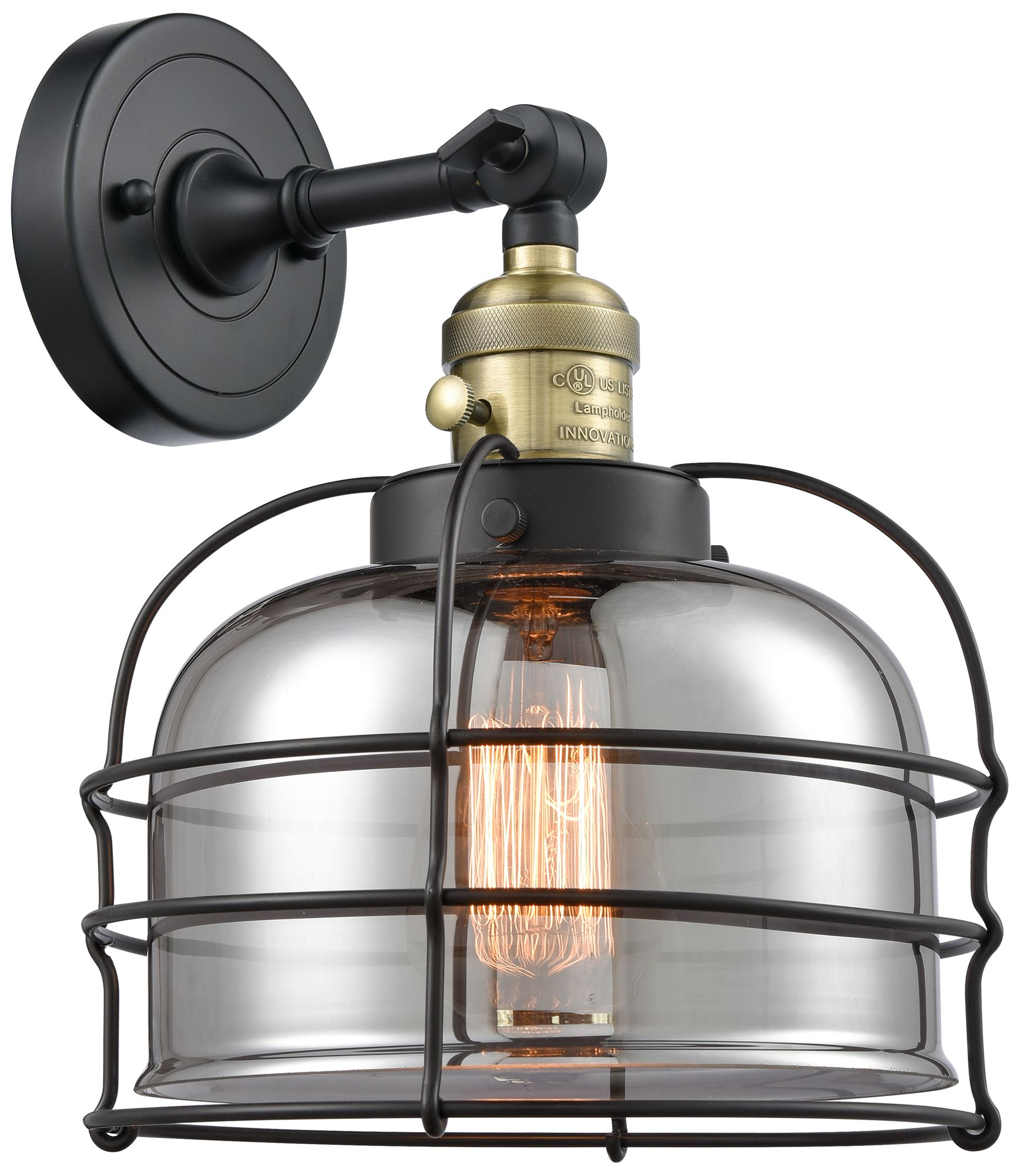 Bell Cage 9" Black Antique Brass Sconce w/ Plated Smoke Shade