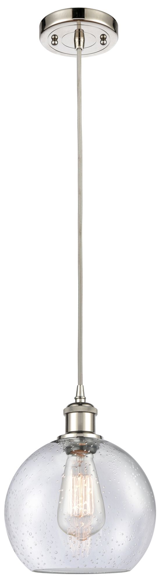 Ballston Athens 8"W Cord Hung Polished Nickel Mini Pendant w/ Seedy Sh