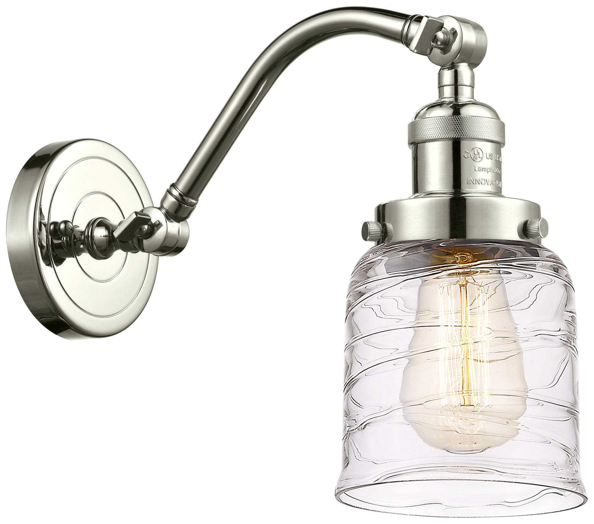 Bell 5" Incandescent Sconce - Nickel Finish - Deco Swirl Shade
