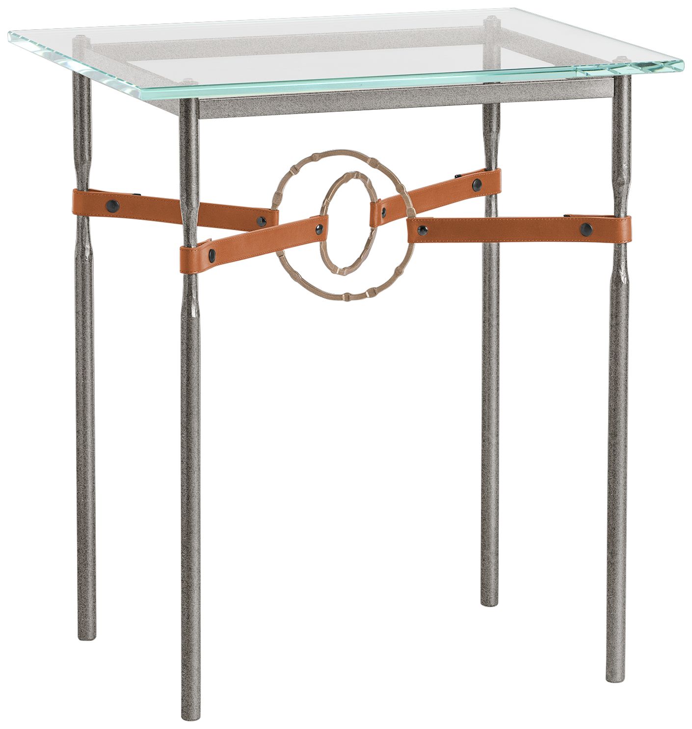 Equus 22" Wide Iron Side Table with Gold Ring Chestnut Strap