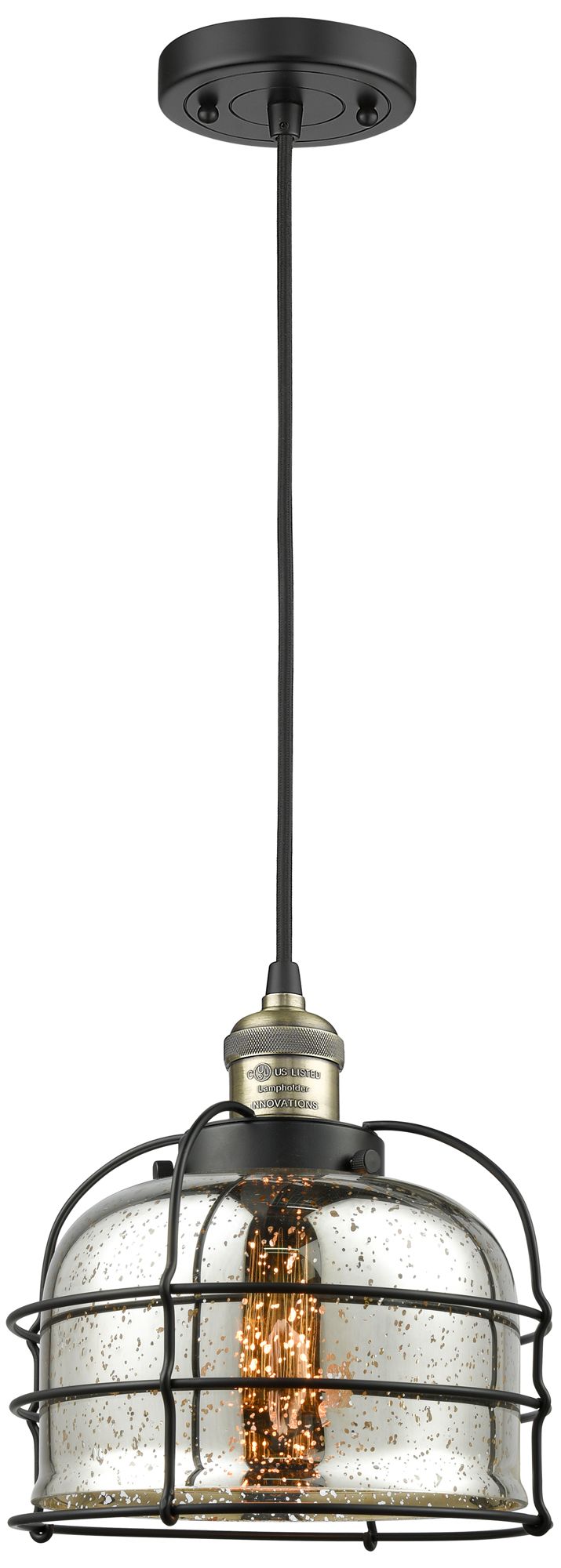 Franklin Bell Cage 9" Black Brass Corded Mini Pendant w/ Mercury Shade