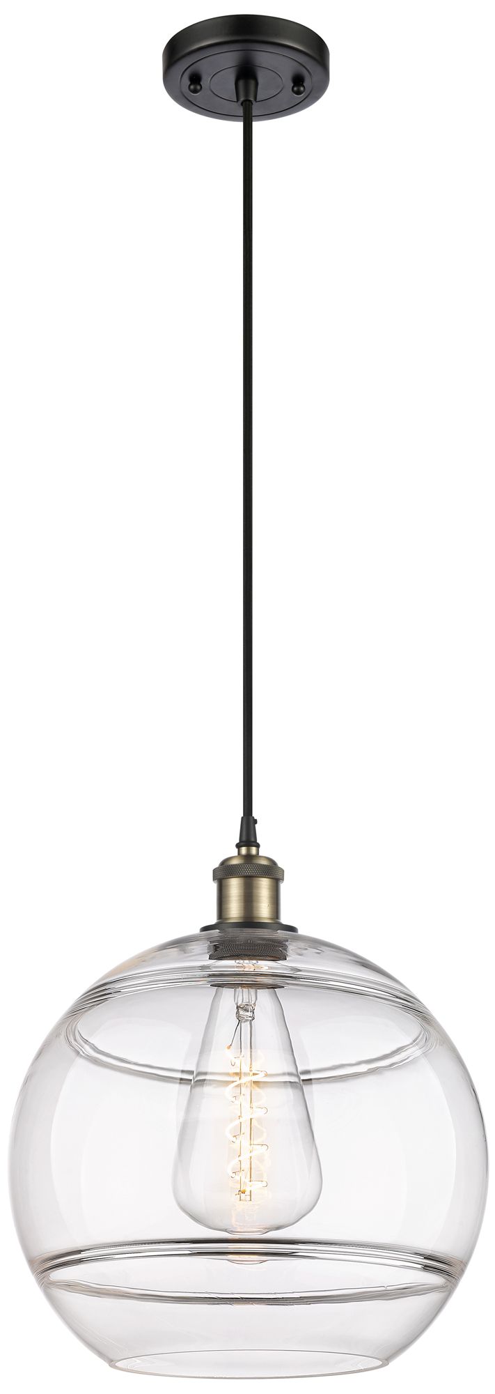 Ballston Rochester 12"W Black Brass Corded Mini Pendant w/ Clear Shade