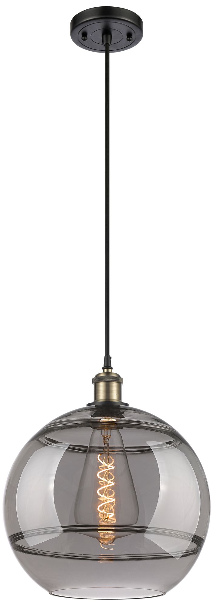Ballston Rochester 12"W Black Brass Corded Mini Pendant w/ Smoke Shade