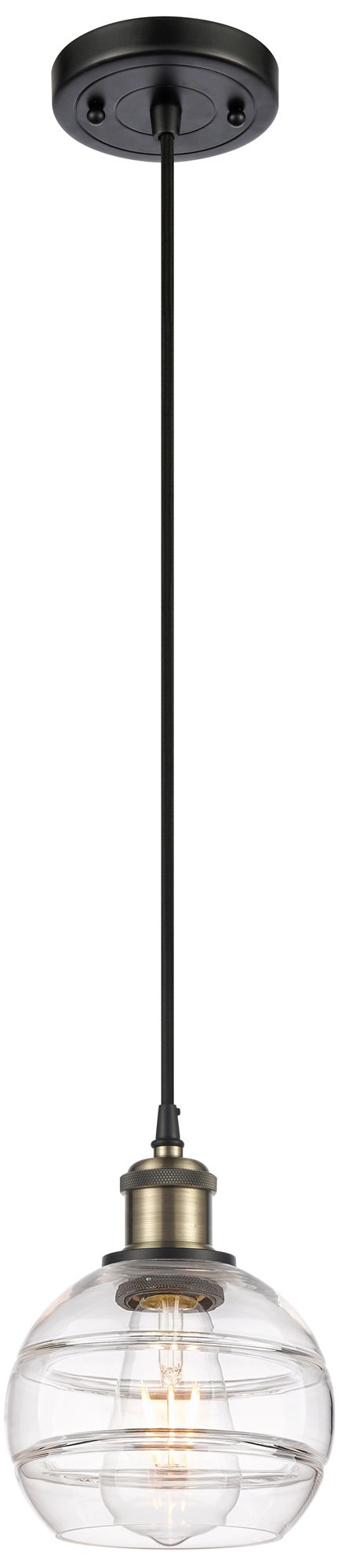 Ballston Rochester 5.88"W Black Brass Corded Mini Pendant w/ Clear Sha