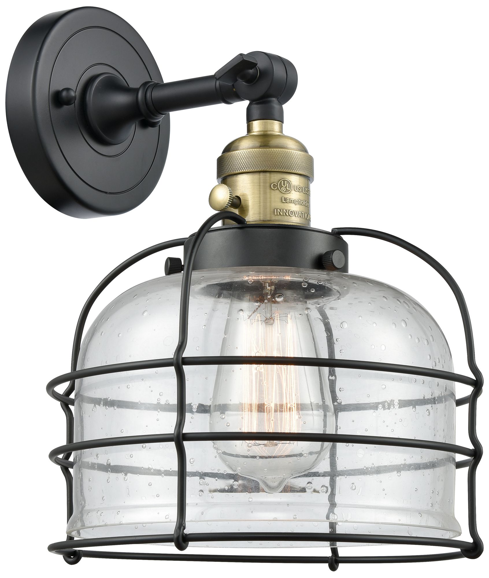 Bell Cage 9" Black Antique Brass Sconce w/ Seedy Shade