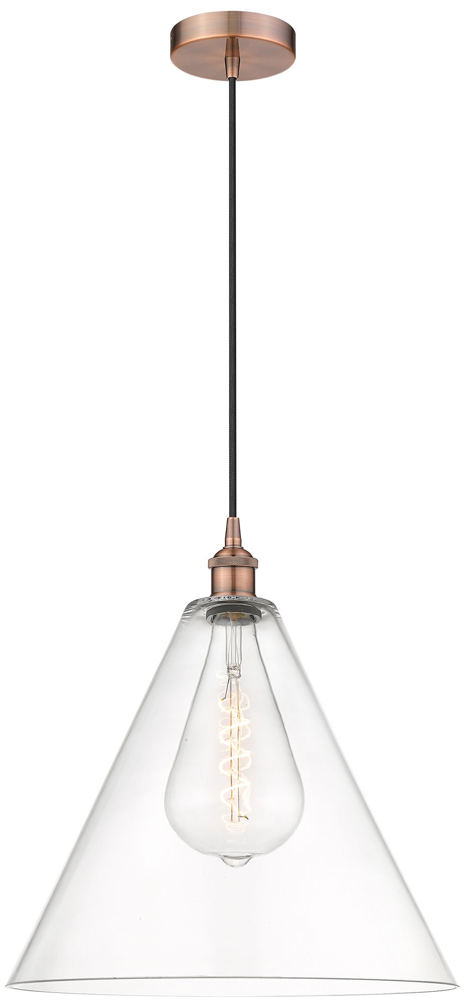 Edison Cone 16" Antique Copper Cord Hung Pendant w/ Clear Shade