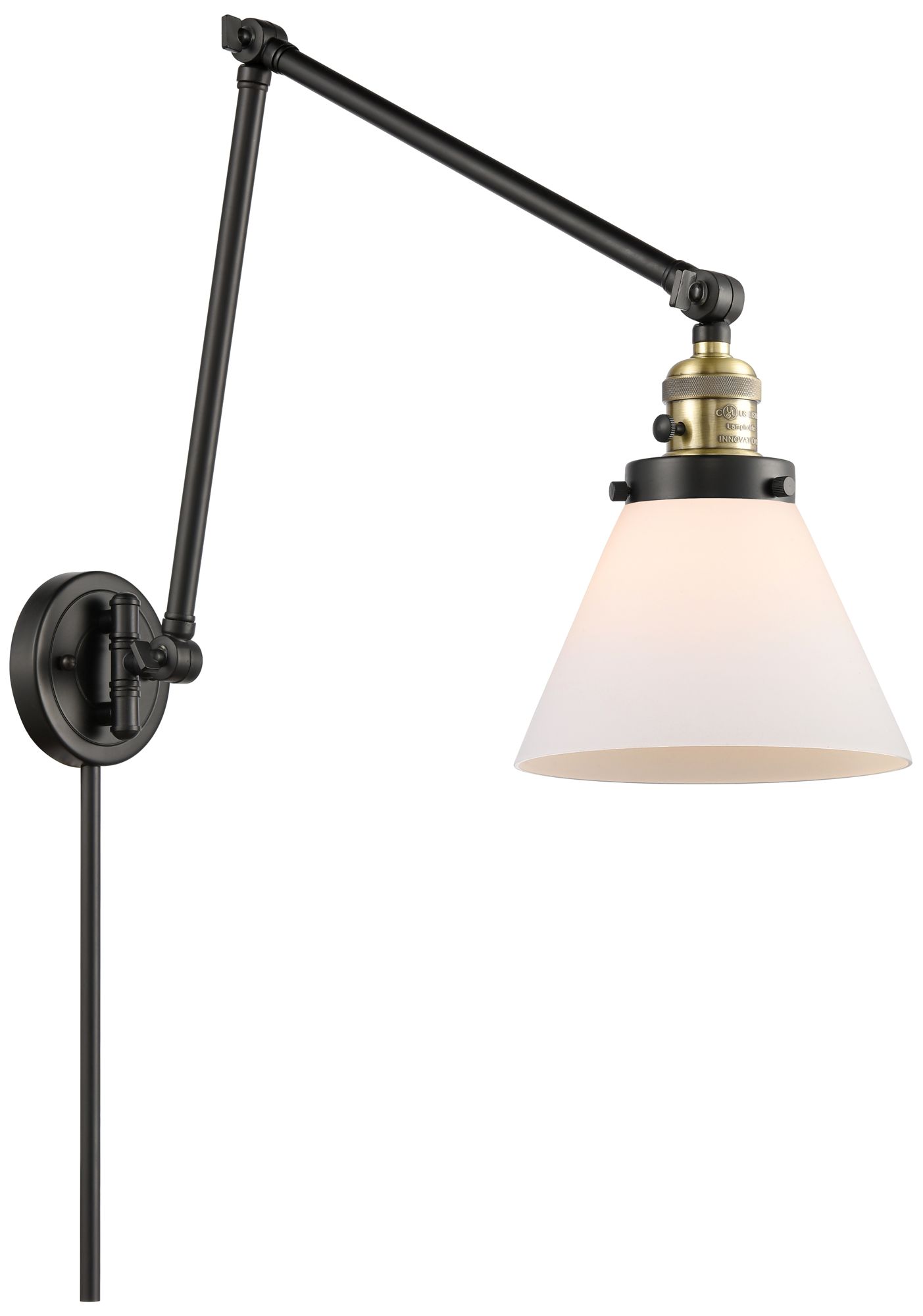 Cone 8" Black Antique Brass Swing Arm w/ Matte White Shade