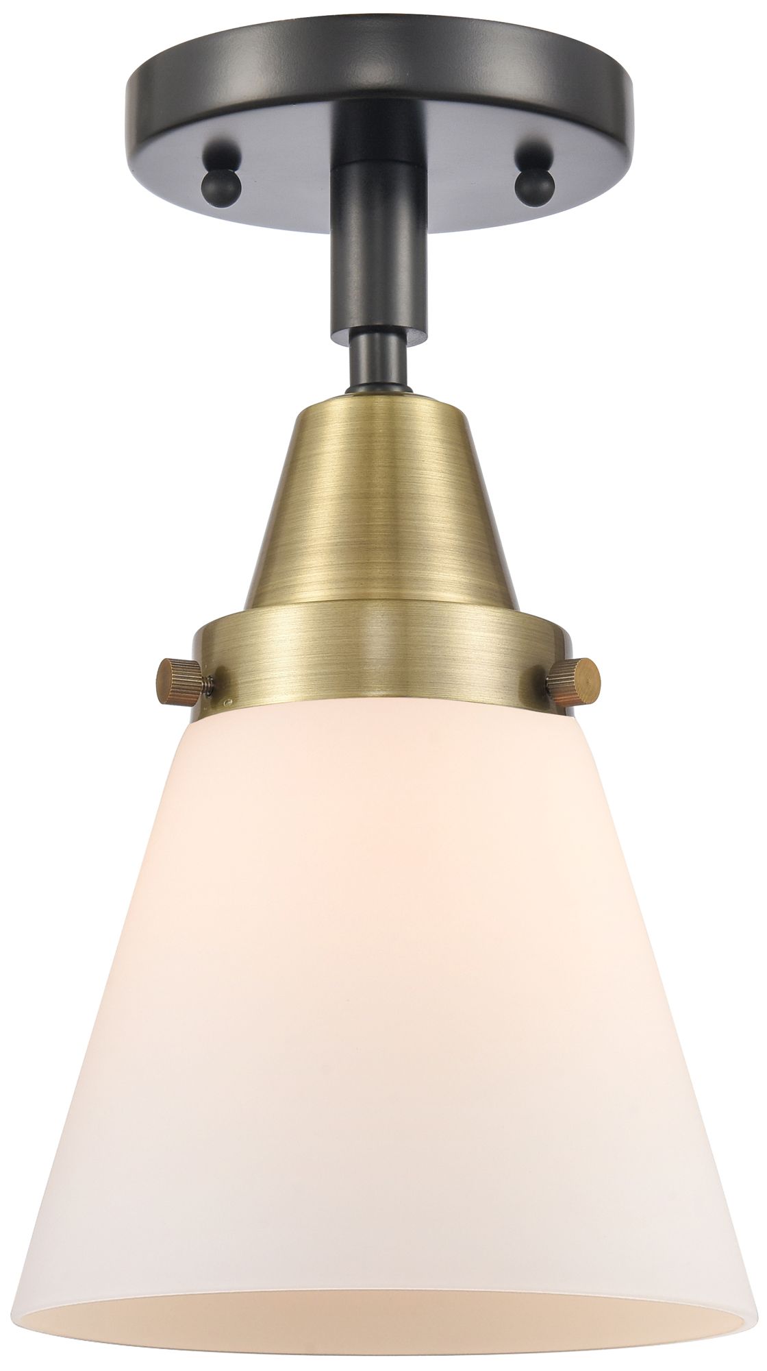 Caden Cone 6" LED Flush Mount - Black Antique Brass - Matte White Shad