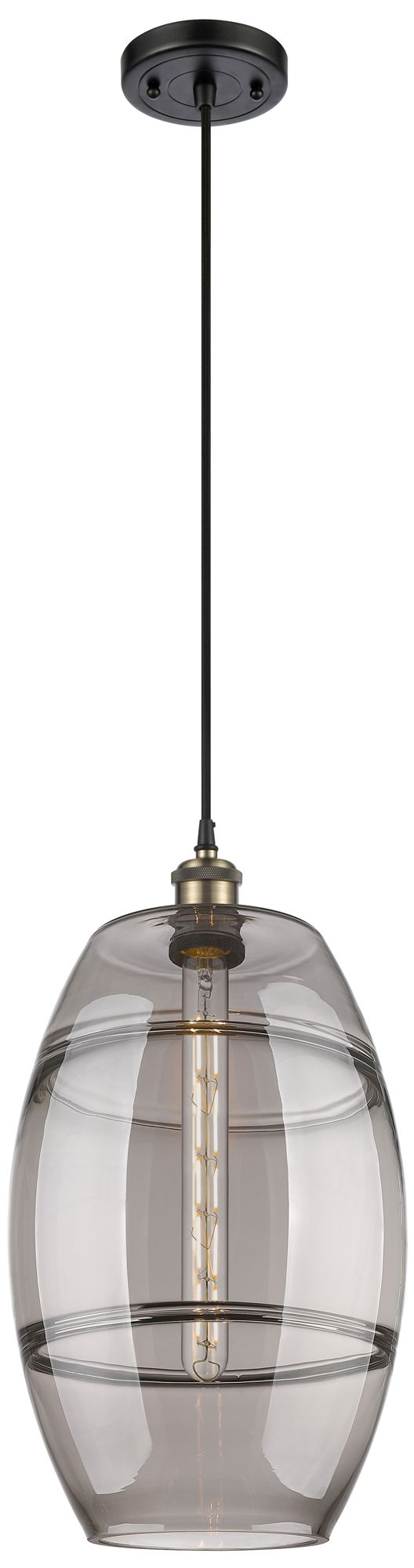 Ballston Vaz 10"W Black Brass Corded Mini Pendant w/ Light Smoke Shade