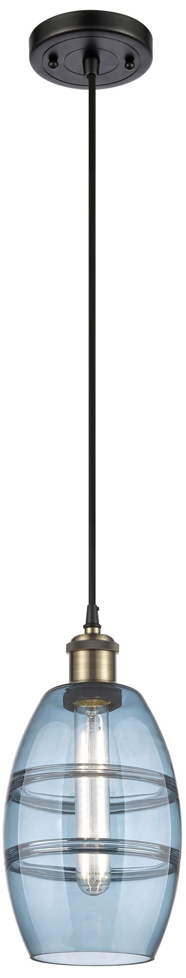 Ballston Vaz 5.88"W Black Antique Brass Corded Mini Pendant w/ Blue Sh