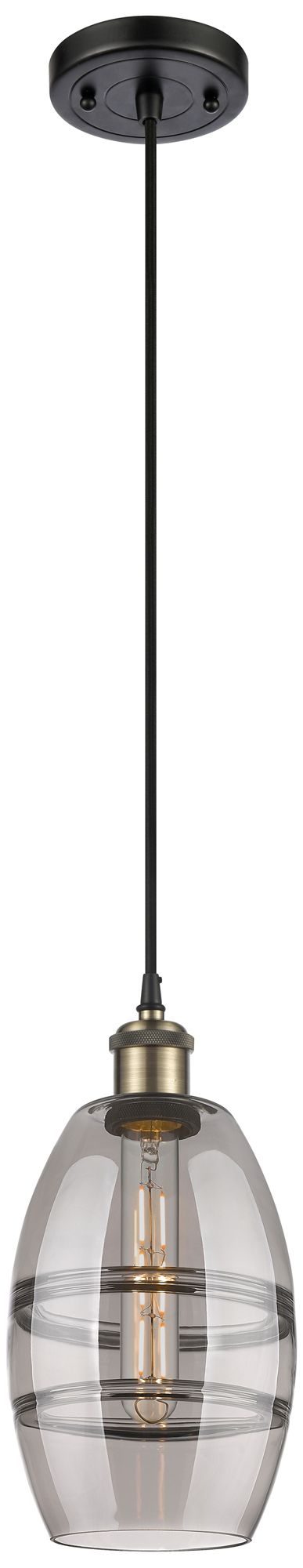 Ballston Vaz 5.88"W Black Brass Corded Mini Pendant w/ Light Smoke Sha