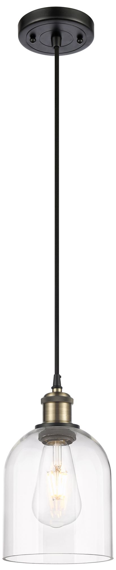 Ballston Bella 5.5"W Black Antique Brass Corded Mini Pendant w/ Clear
