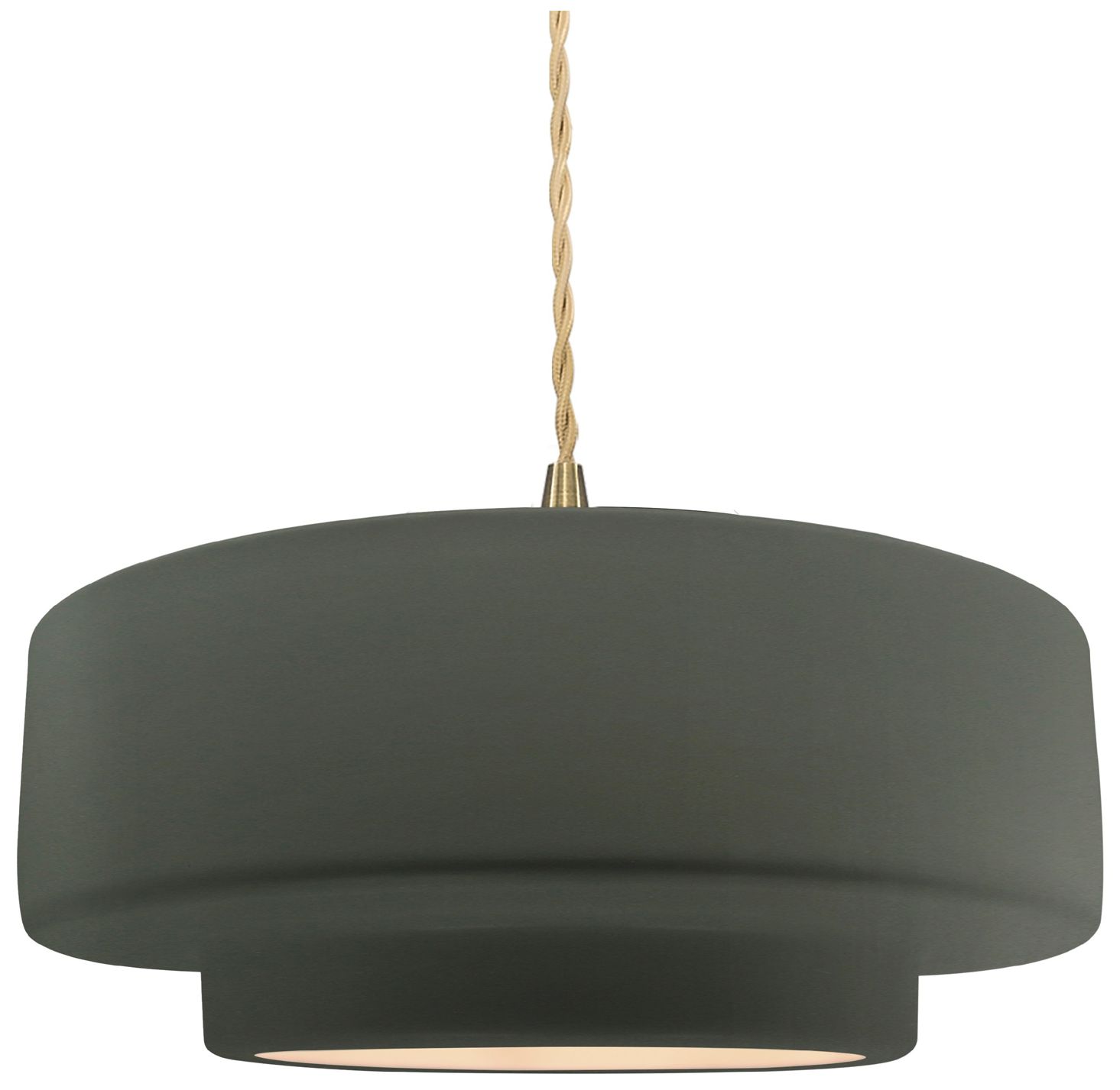 Radiance 14.5"W Pewter Green Frame Brushed Brass Tier Beige Twisted Pe