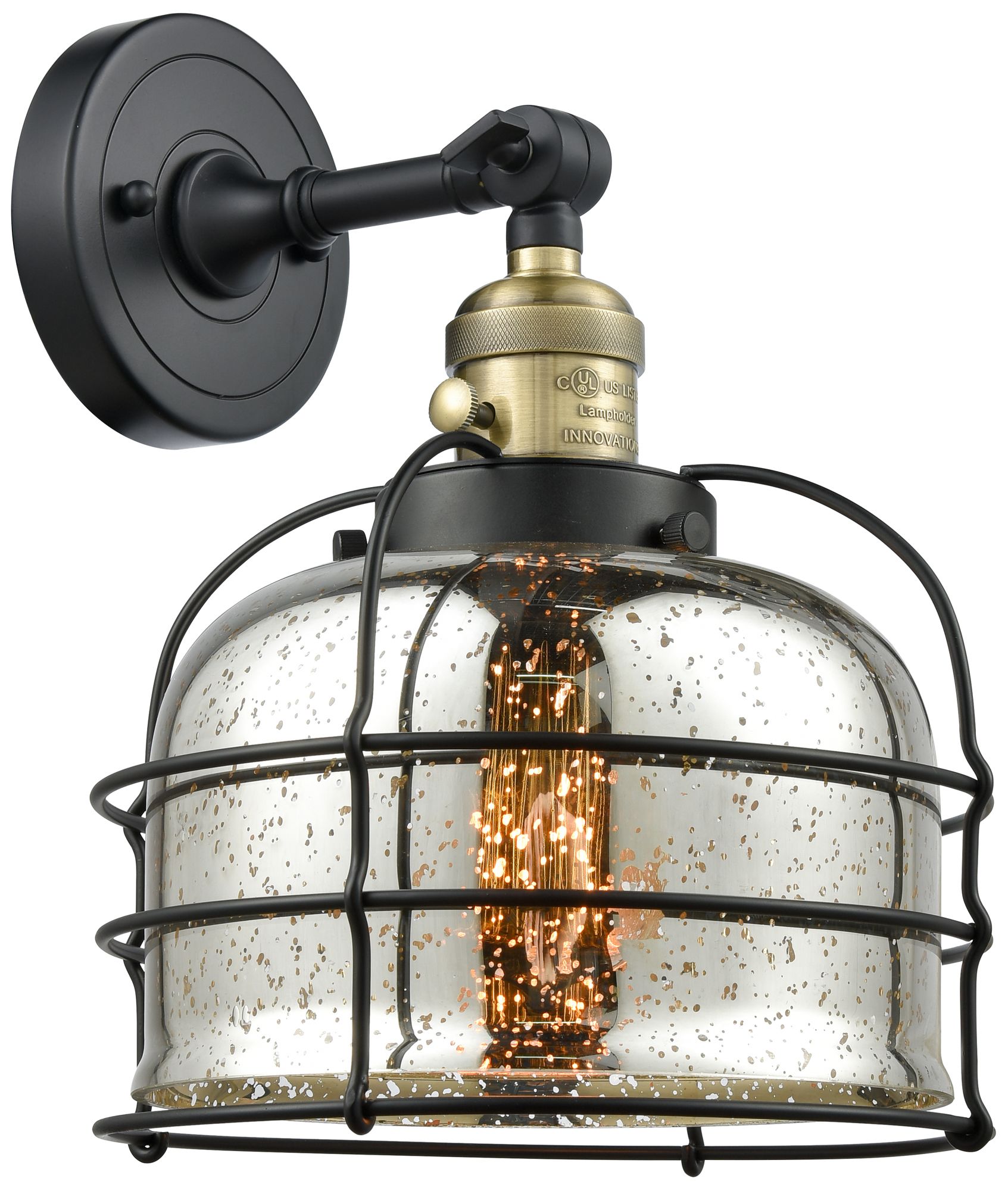 Bell Cage 9" Black Antique Brass Sconce w/ Silver Plated Mercury Shade
