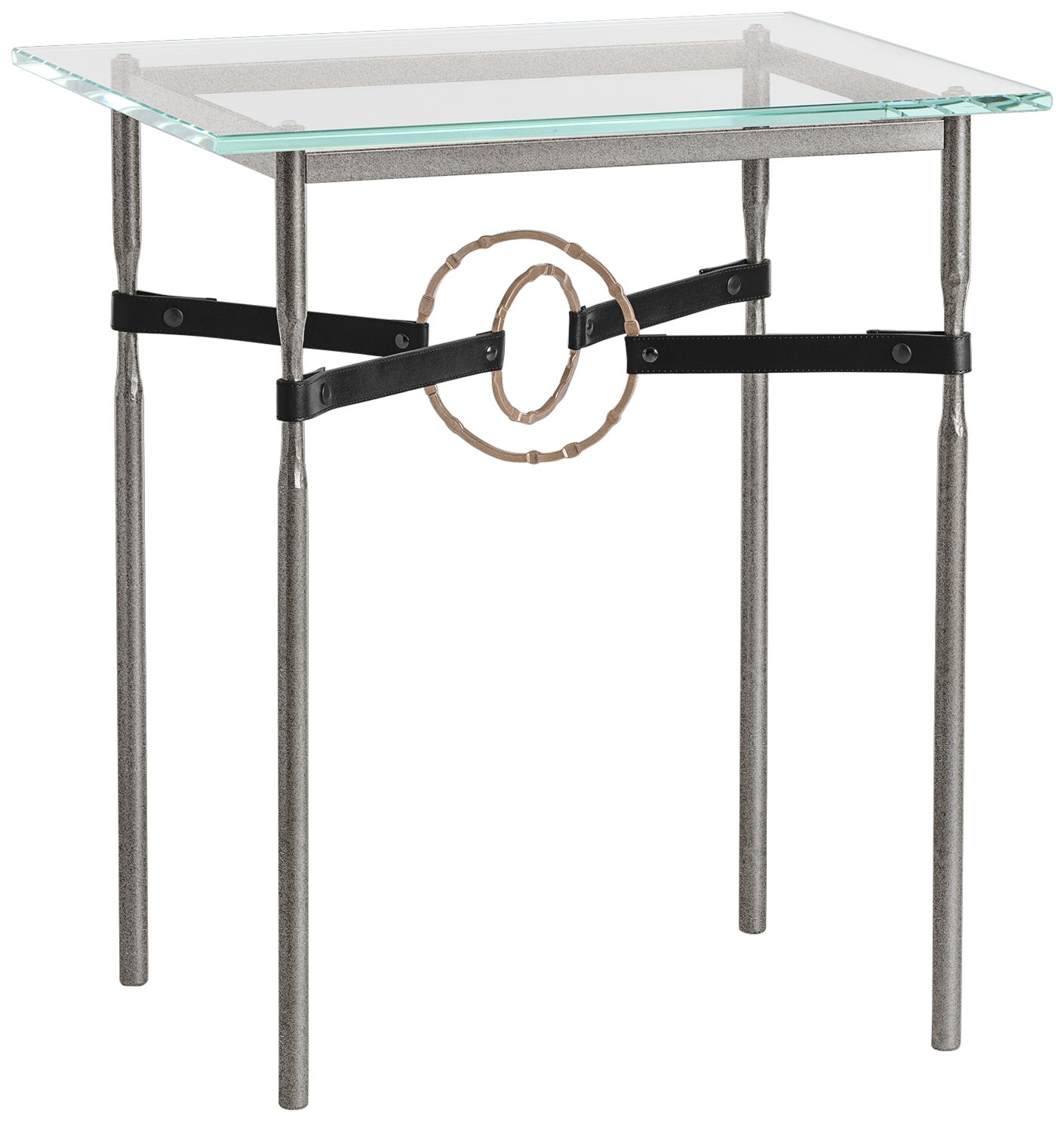 Equus 22"W Natural Iron Side Table w/ Gold Ring Black Strap