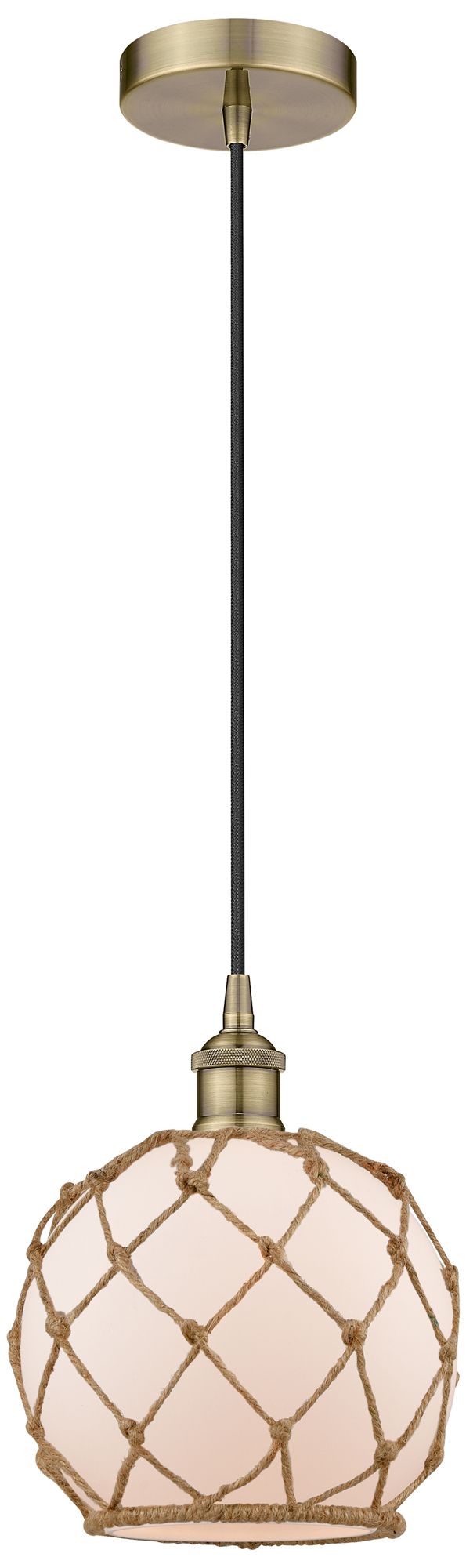 Edison Farmhouse 8" Brass Corded Mini Pendant w/ White & Brown Rop