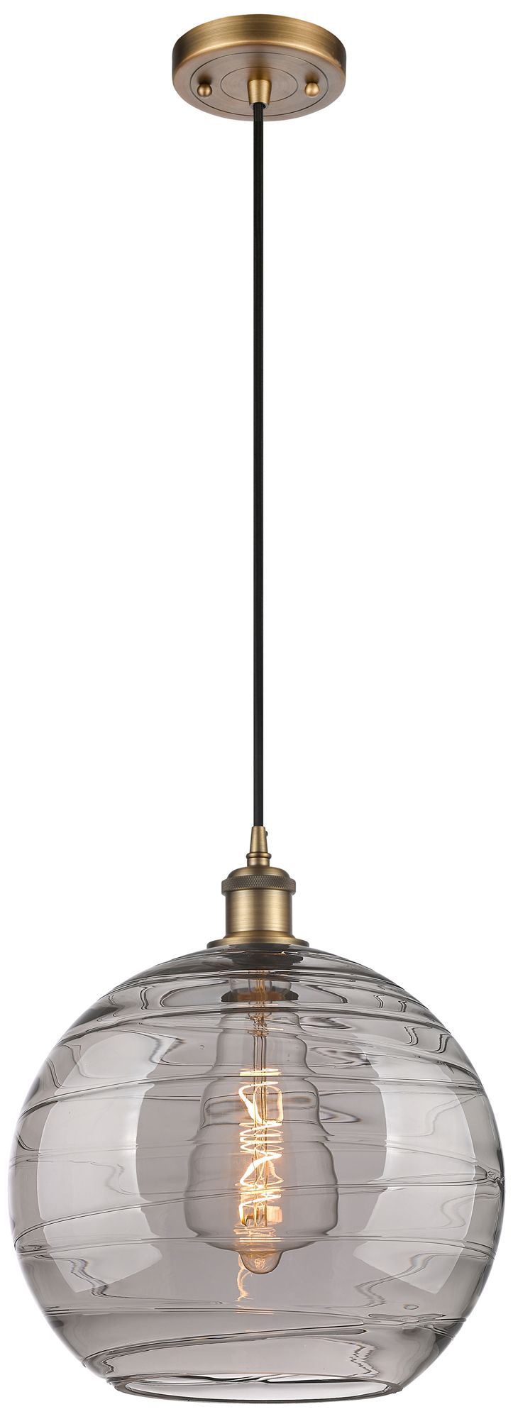 Ballston Athens 12"W Brushed Brass Corded Mini Pendant w/ Smoke Swirl