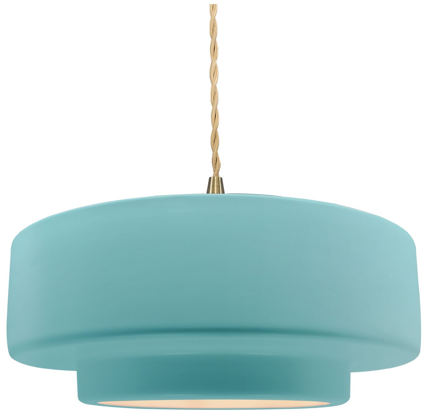14.5"W Reflecting Pool Frame Brushed Brass Tier Beige Twisted Pendant