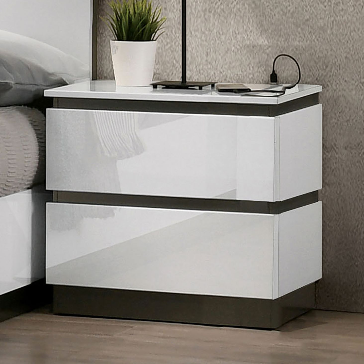 Misti 23" Wide White Metallic Gray Wood 2-Drawer Nightstand