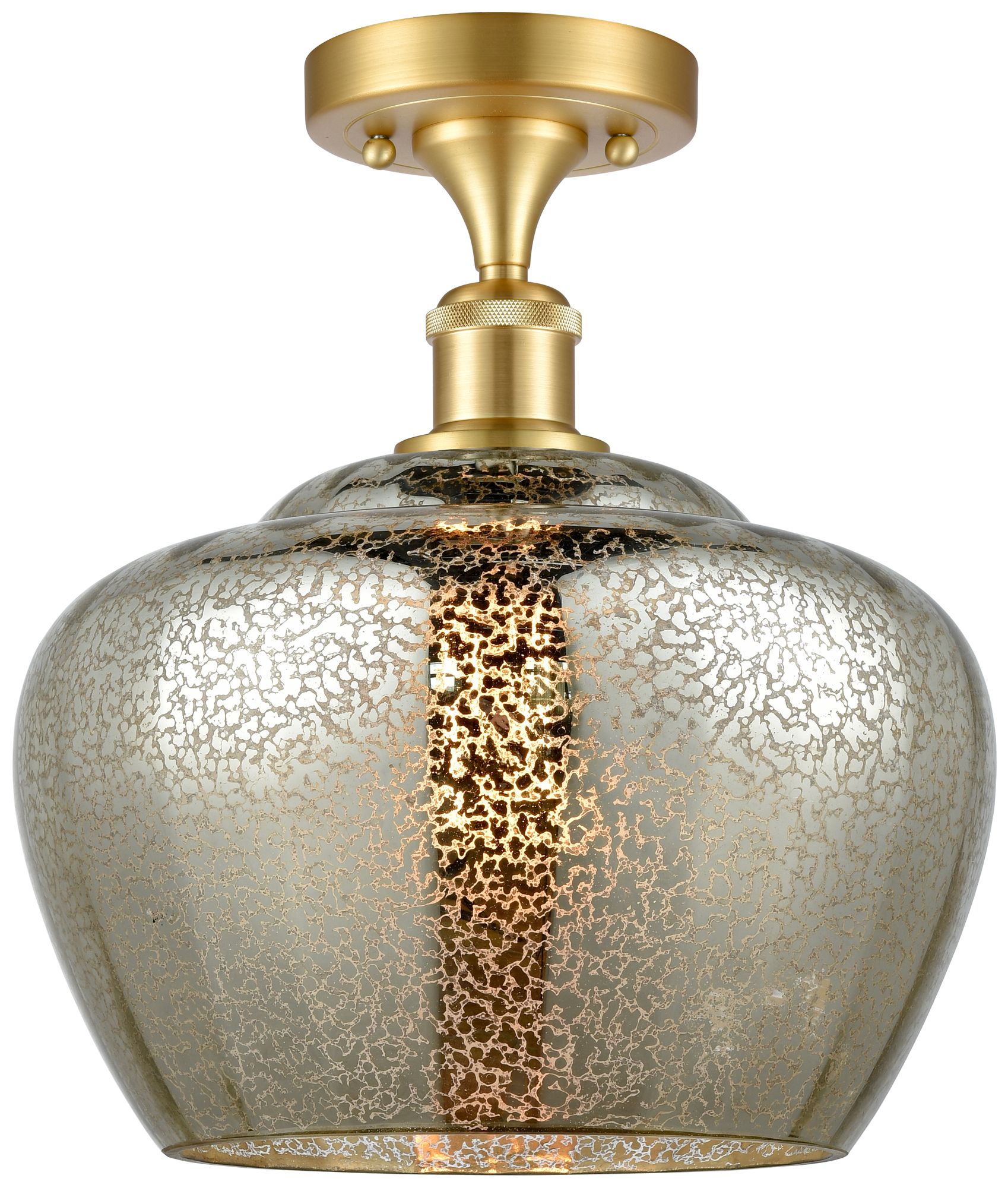 Ballston Fenton 11" Wide Satin Gold Semi Flush Mount w/ Mercury Shade