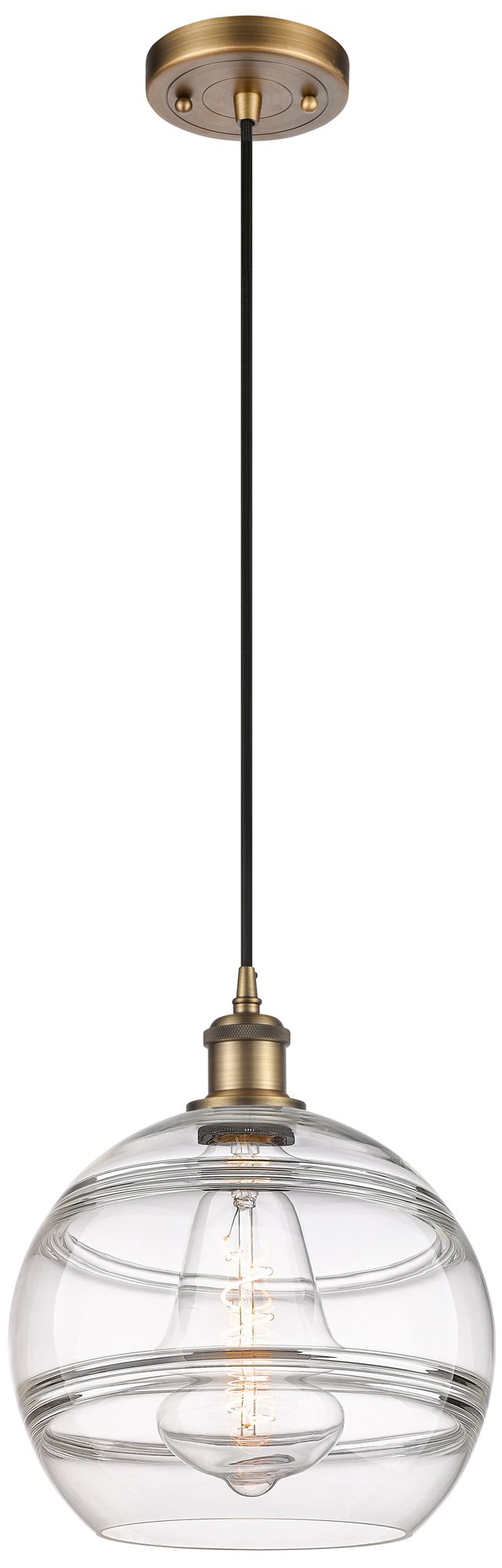 Ballston Rochester 10"W Brushed Brass Corded Mini Pendant w/ Clear Sha