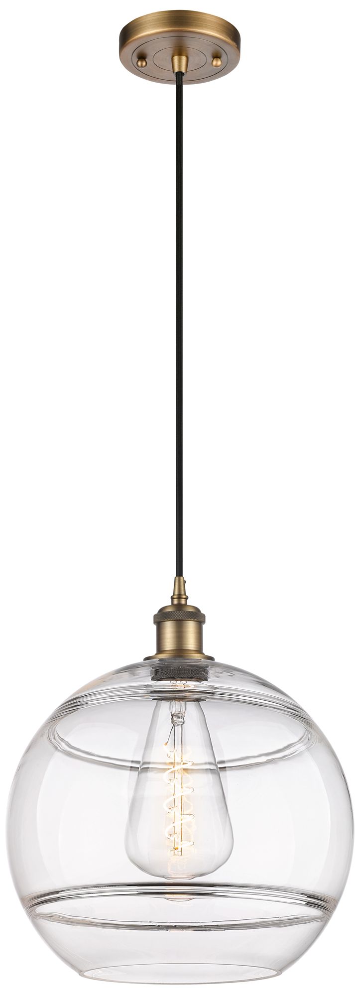 Ballston Rochester 12"W Brushed Brass Corded Mini Pendant w/ Clear Sha
