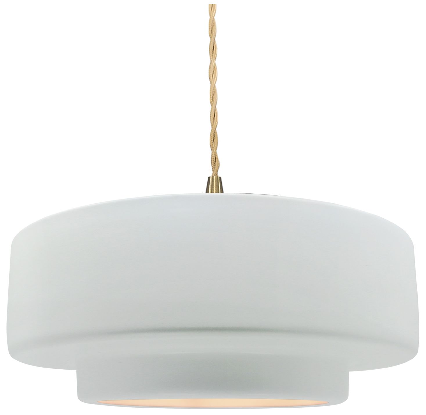 14.5"W Gloss White Sided Frame Brushed Brass Tier Beige Twisted Pendan