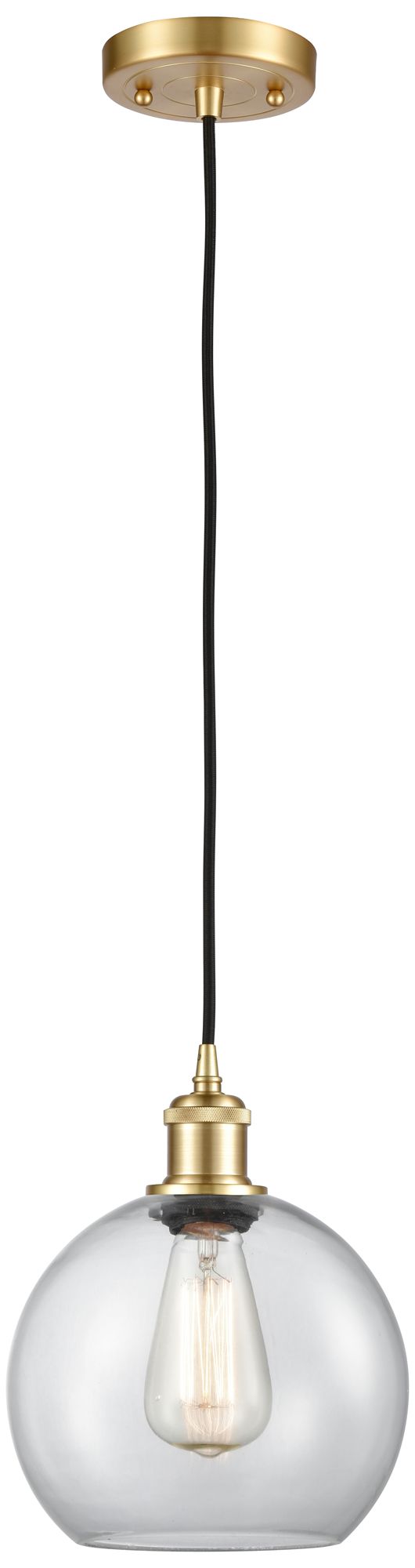 Ballston Athens 8"W Cord Hung Satin Gold Mini Pendant w/ Clear Shade