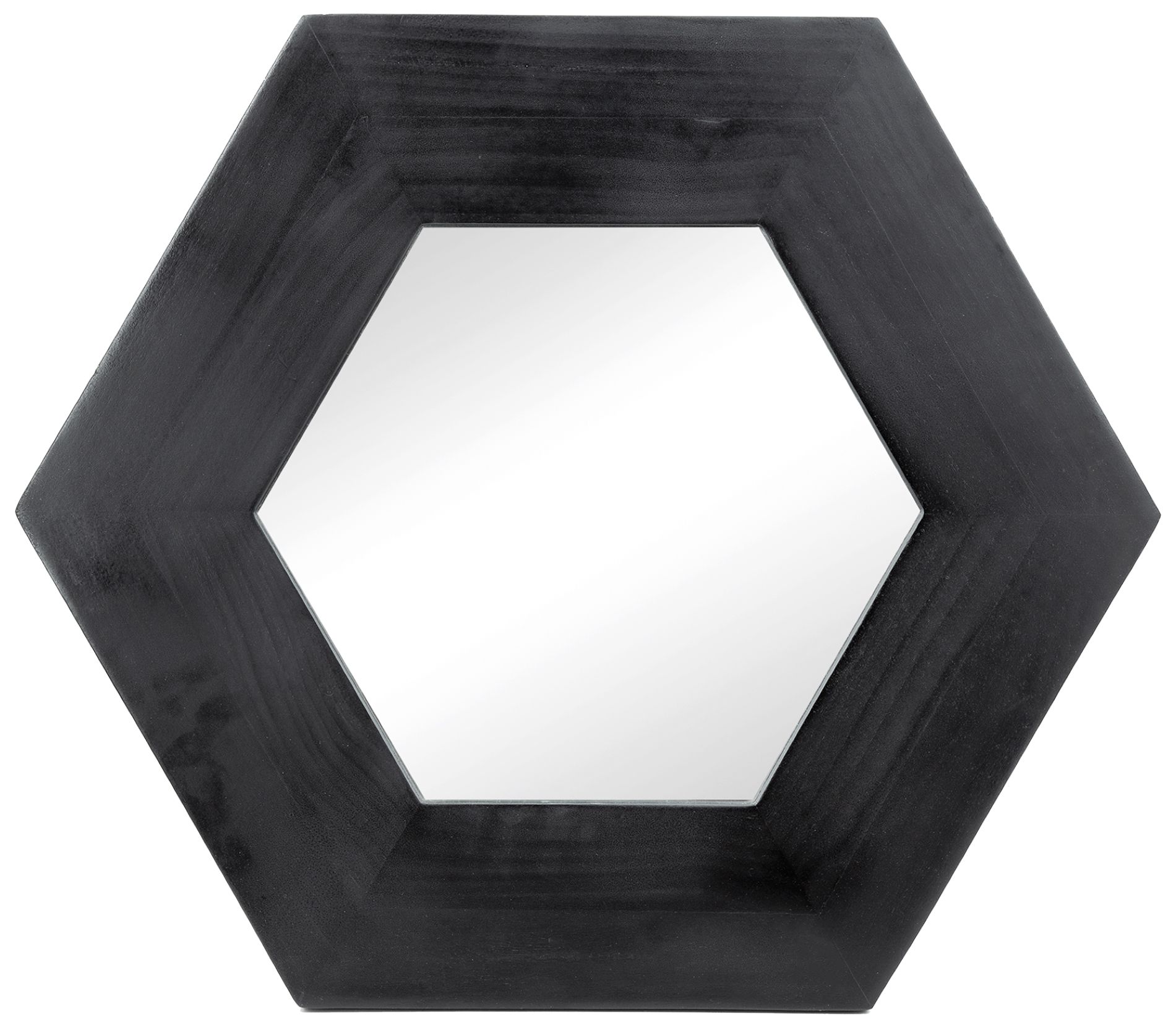 Cameron 18.5" x 18.5" Black Teak Wood Hexagon Wall Mirror