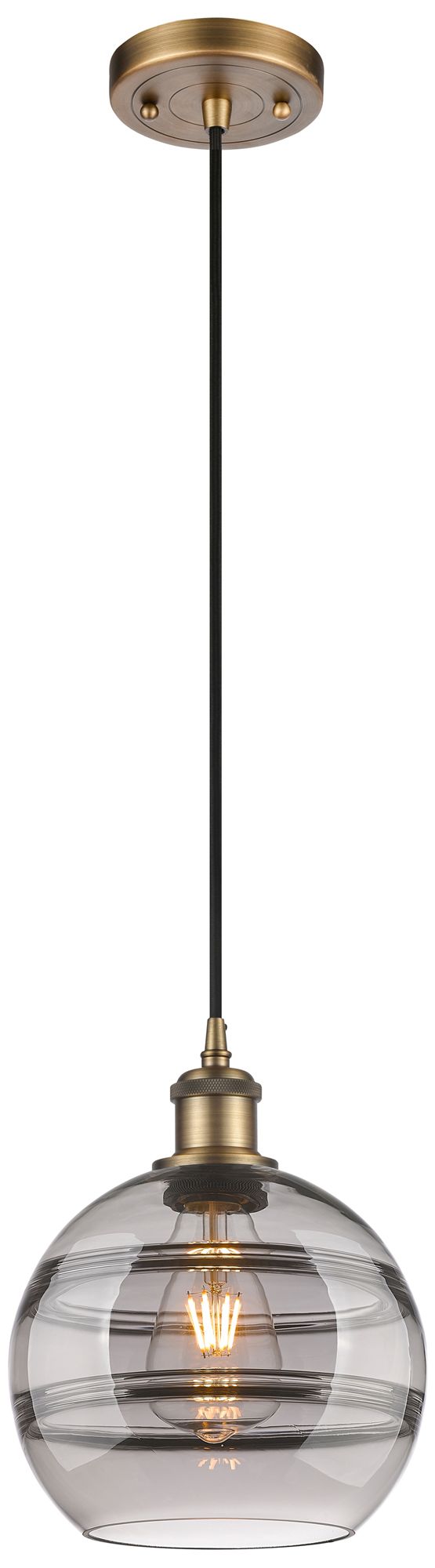 Ballston Rochester 8"W Brushed Brass Corded Mini Pendant w/ Smoke Shad