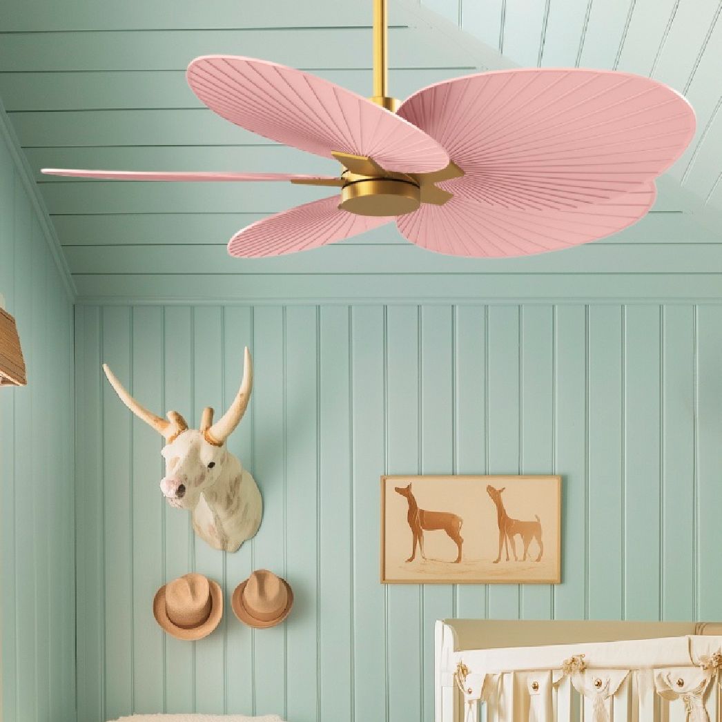 Alessandra Tropical 48" Brass Ceiling Fan w/ Light Pink Blades