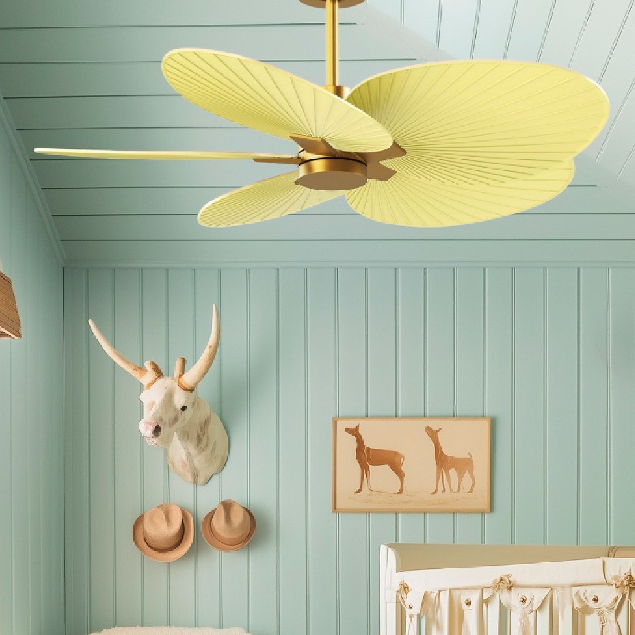 48" Alessandra Tropical Brass Ceiling Fan with Yellow Blades