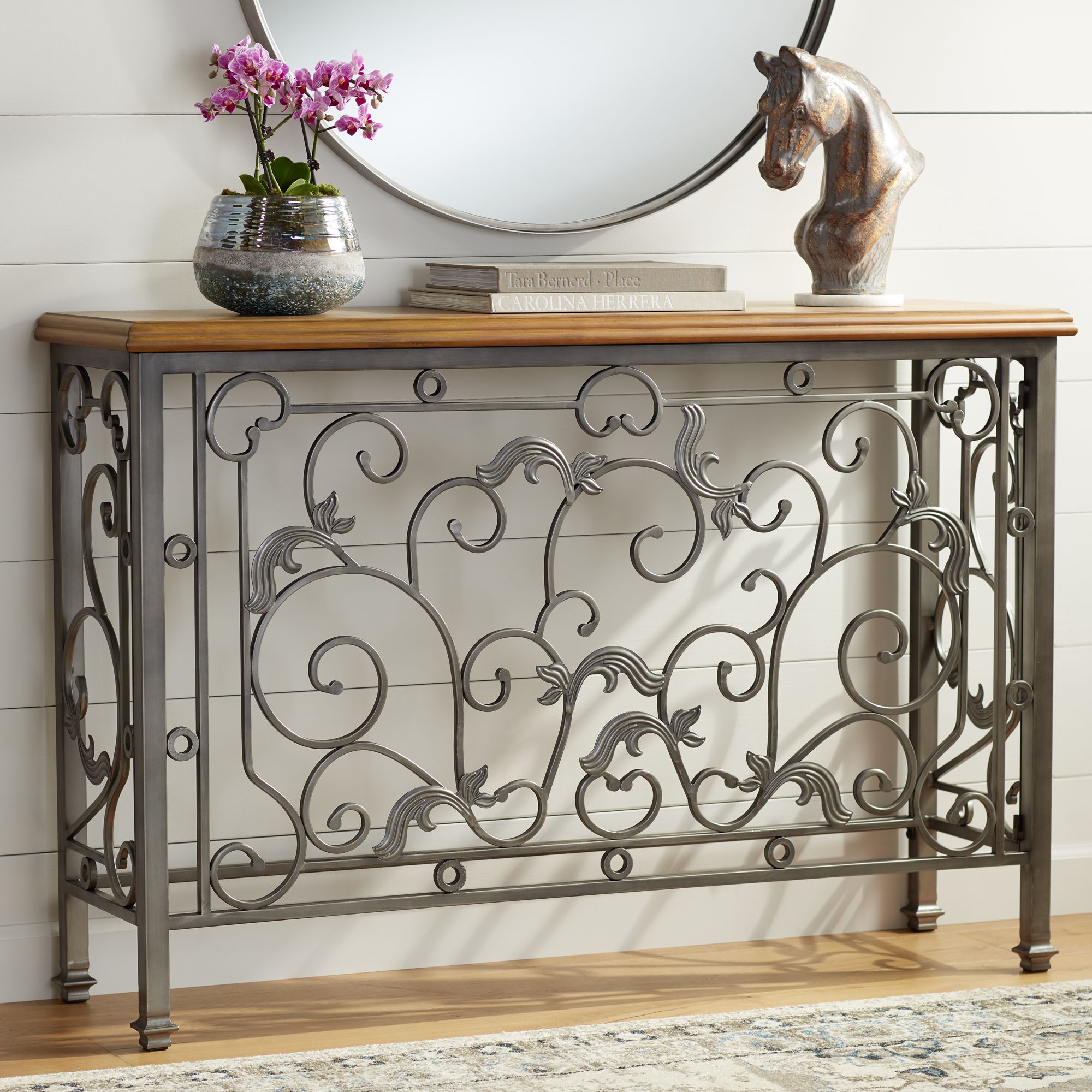 Leda 50 1/2" Wide Antique Pewter and Elm Wood Console Table