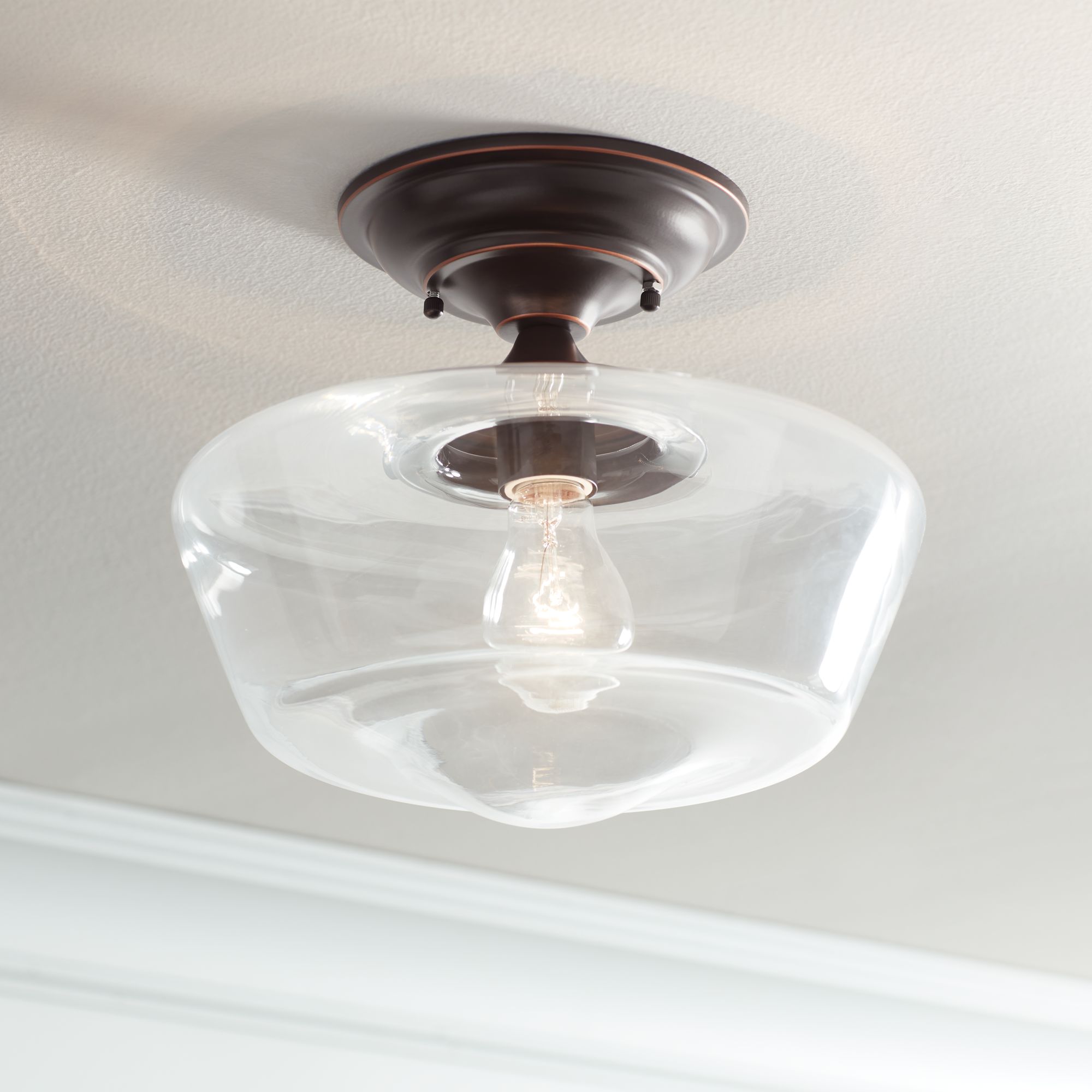 Regency Hill Schoolhouse Floating 12" Bronze Clear Glass Ceiling Light