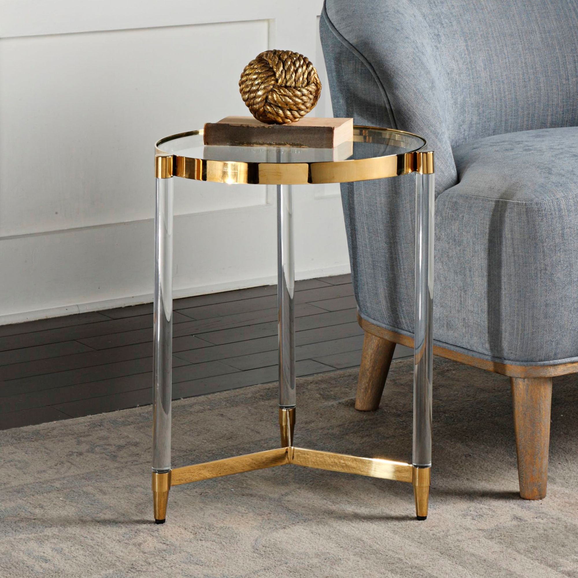 Kellen 16" Wide Glass and Gold Modern Round Accent Table