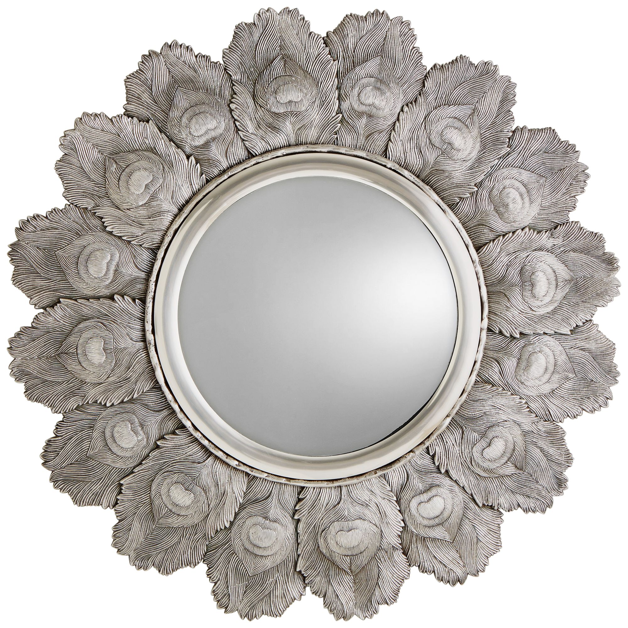 Peacock Feather Antique Silver 35 1/2" Round Wall Mirror