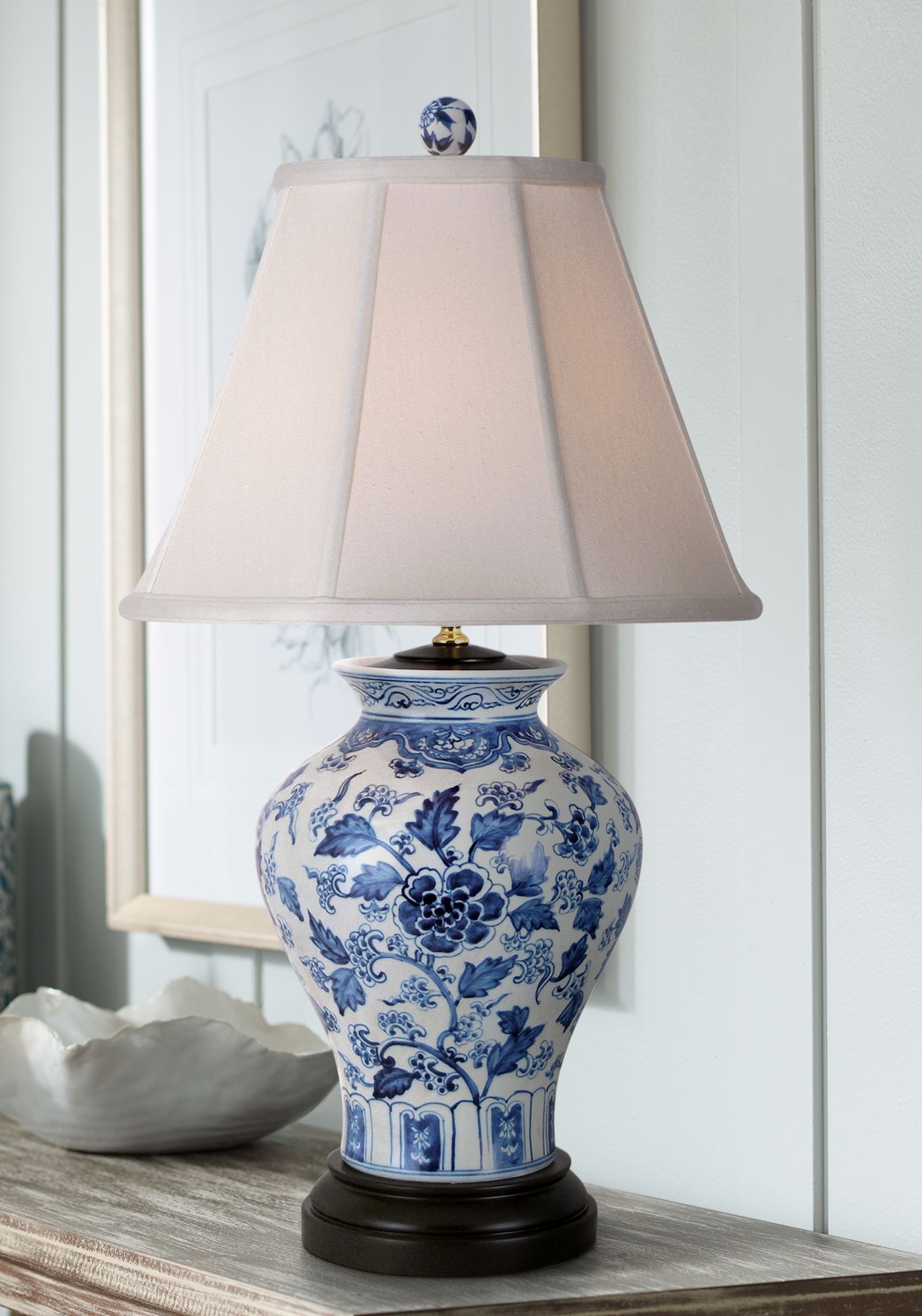 Jinan Flower 26" Traditional Blue and White Porcelain Table Lamp