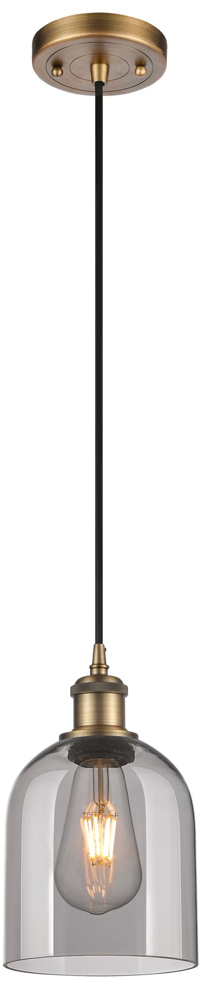 Ballston Bella 5.5"W Brushed Brass Corded Mini Pendant w/ Light Smoke