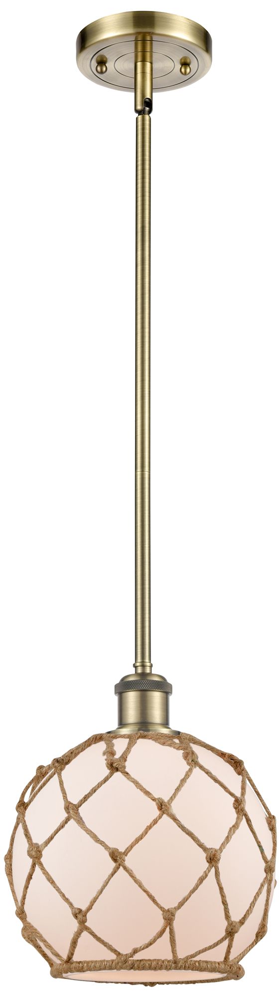 Farmhouse Rope 8"W Antique Brass Stem Mini Pendant w/ White and Brown