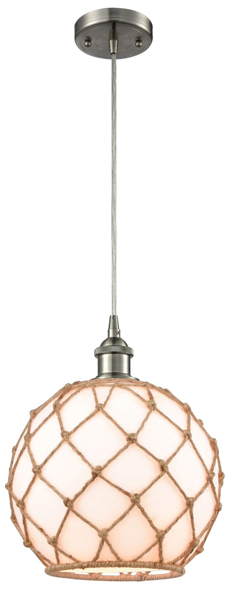 Farmhouse 10"W Cord Hung Satin Nickel Mini Pendant w/ White and Brown
